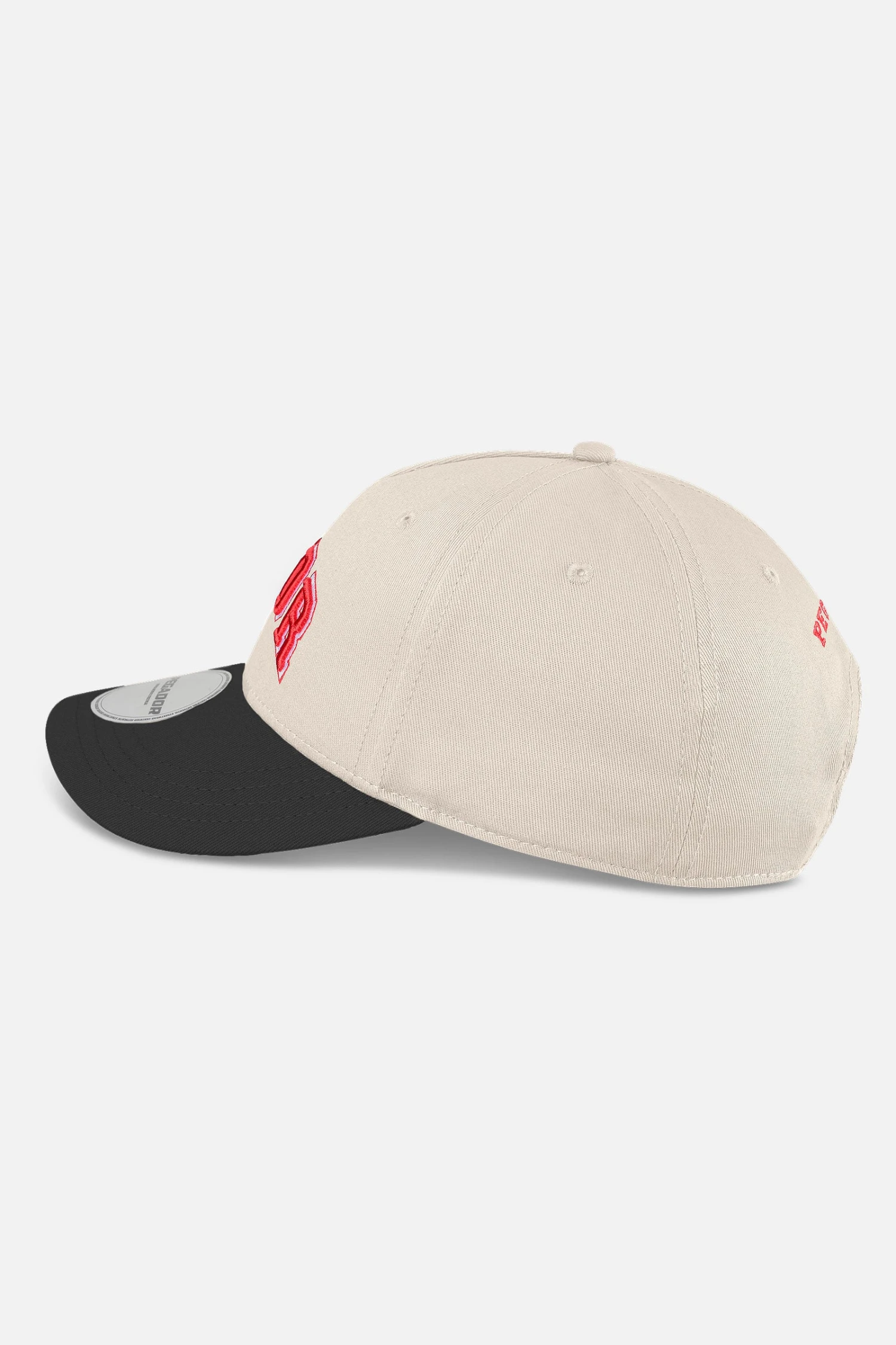 - red / white 3D logo embroidery to the front