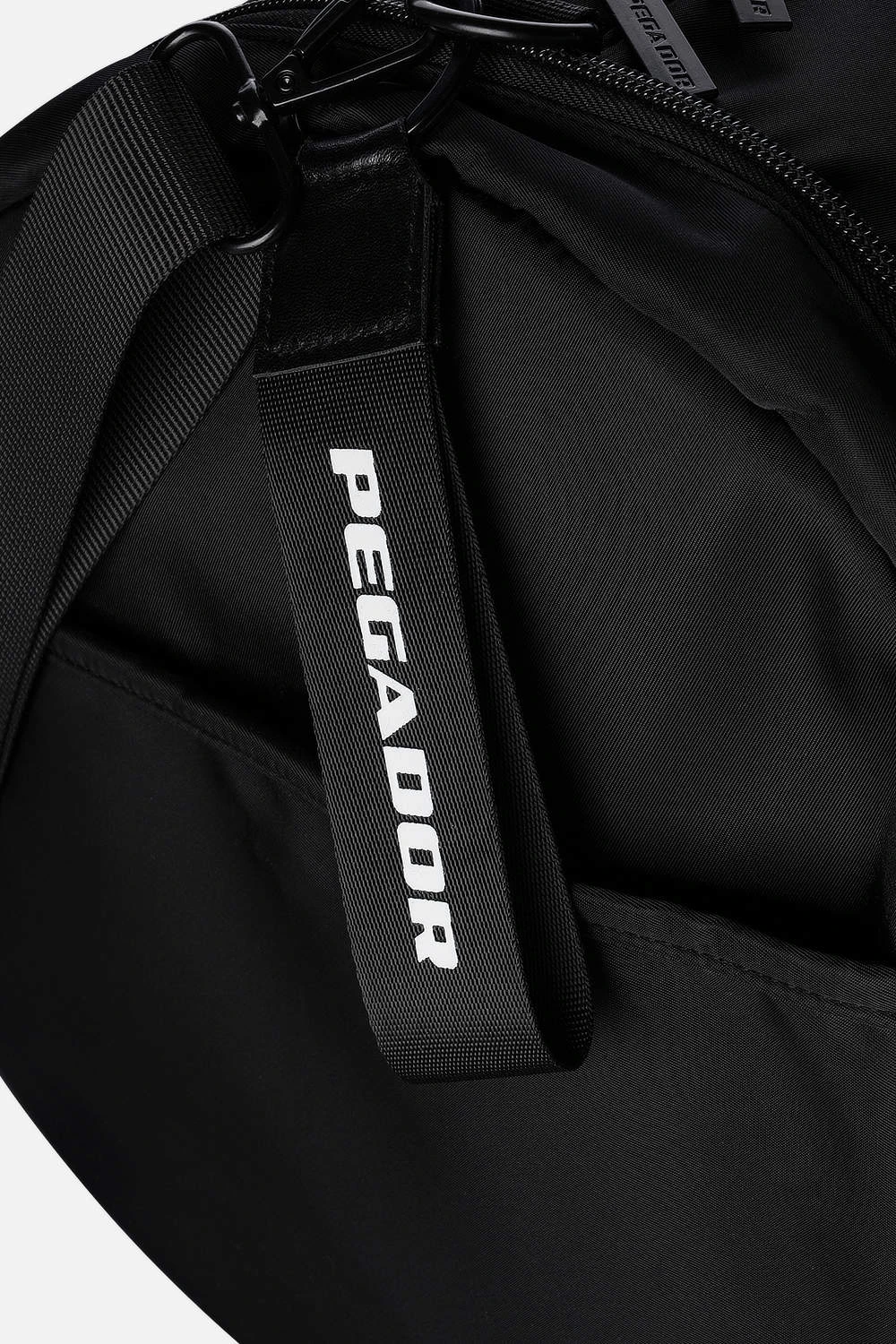 - black loop with white logo print to the side