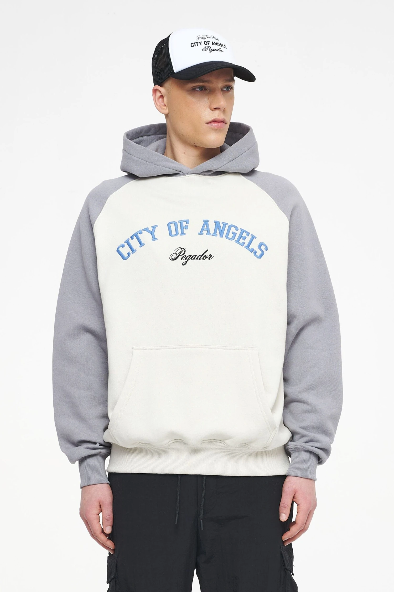 - vintage washed angels cream/ dusk grey raglan hoodie