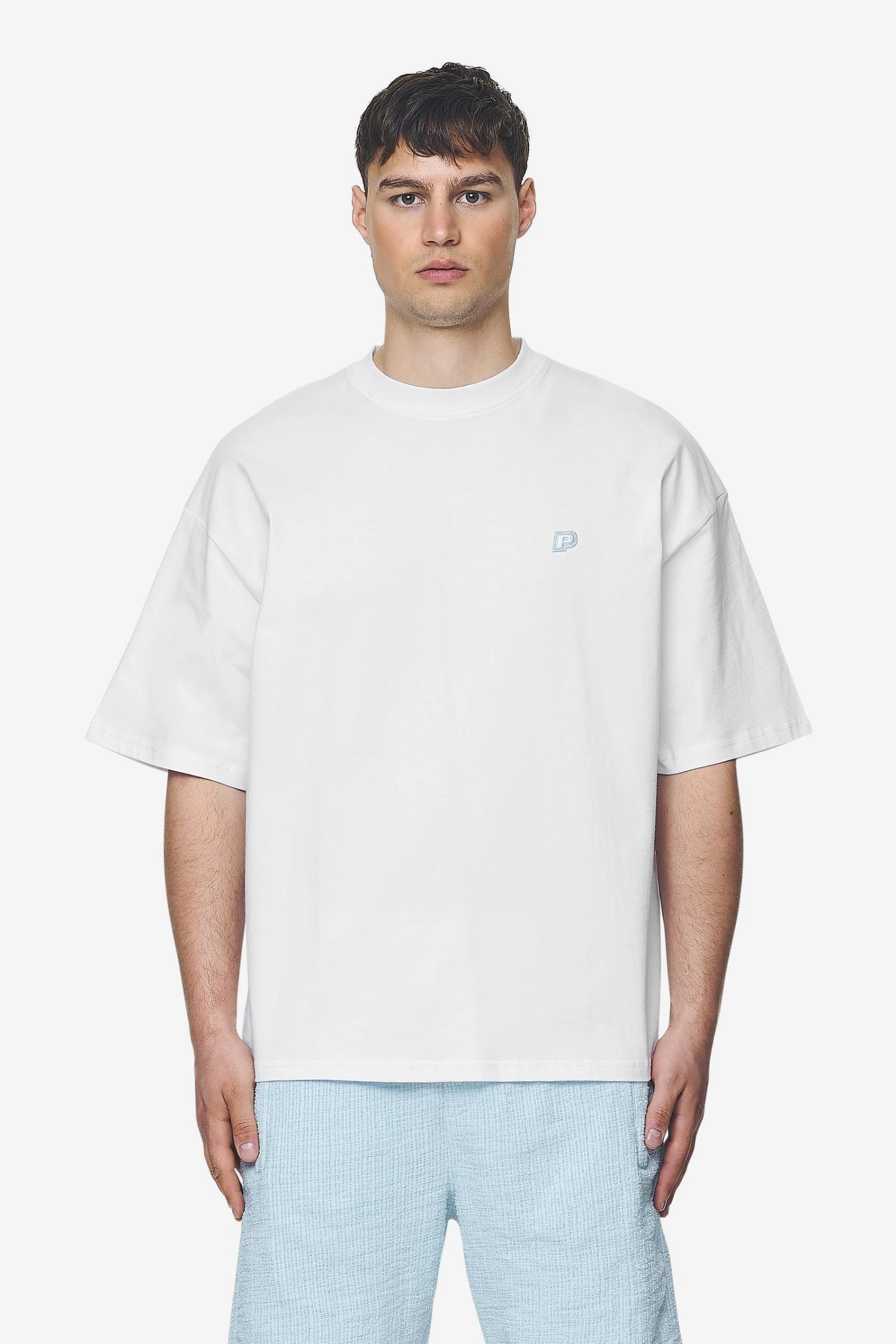 Leono Boxy Tee White Baby Blue