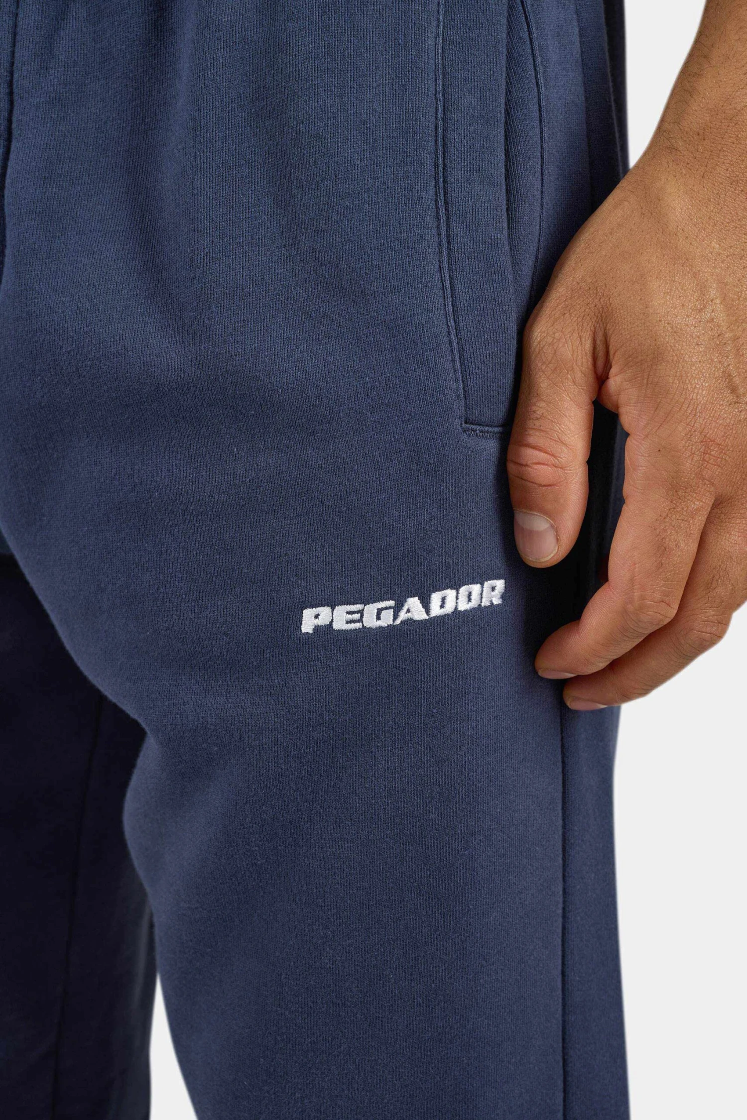 - weißer Logo Stick auf dem linken Hosenbein