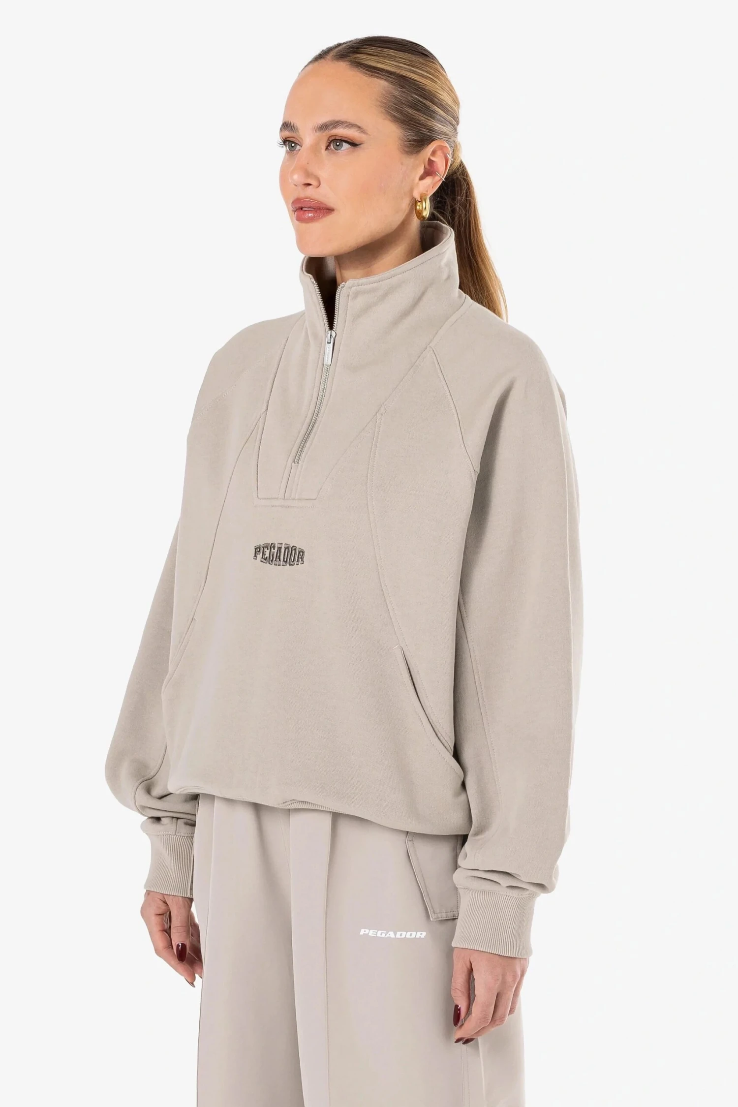 - gewaschener dark stone-farbiger oversized Halfzip Sweater