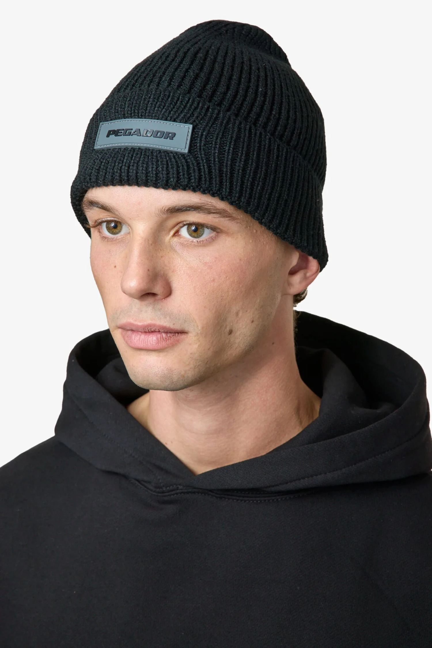 Pegador Logo Rubber Beanie Heavy Knit Black Black