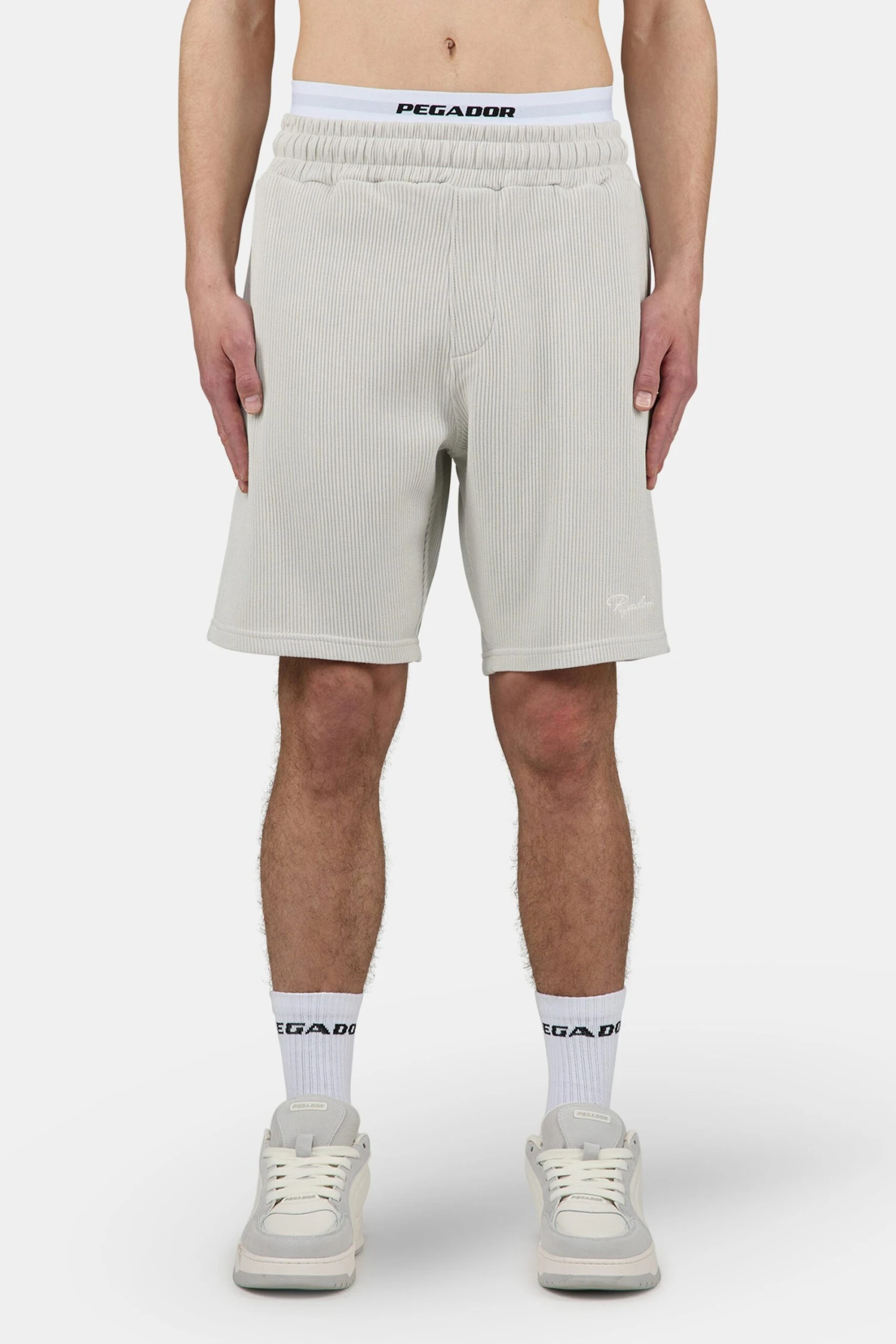 Signar Heavy Rib Shorts Washed Pure Grey Unbleached