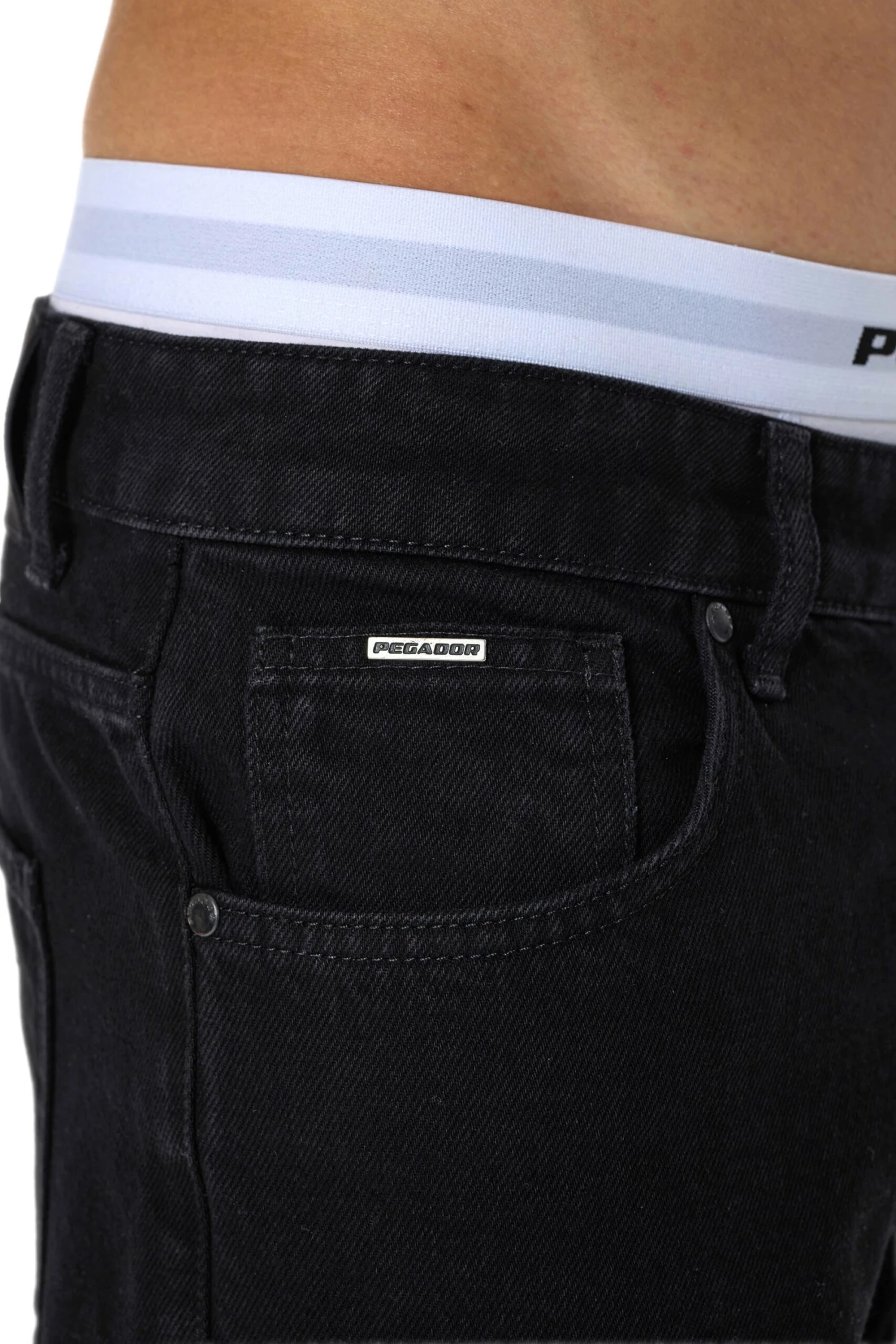 - silberner Metall-Logo-Patch auf der rechten Hosentasche