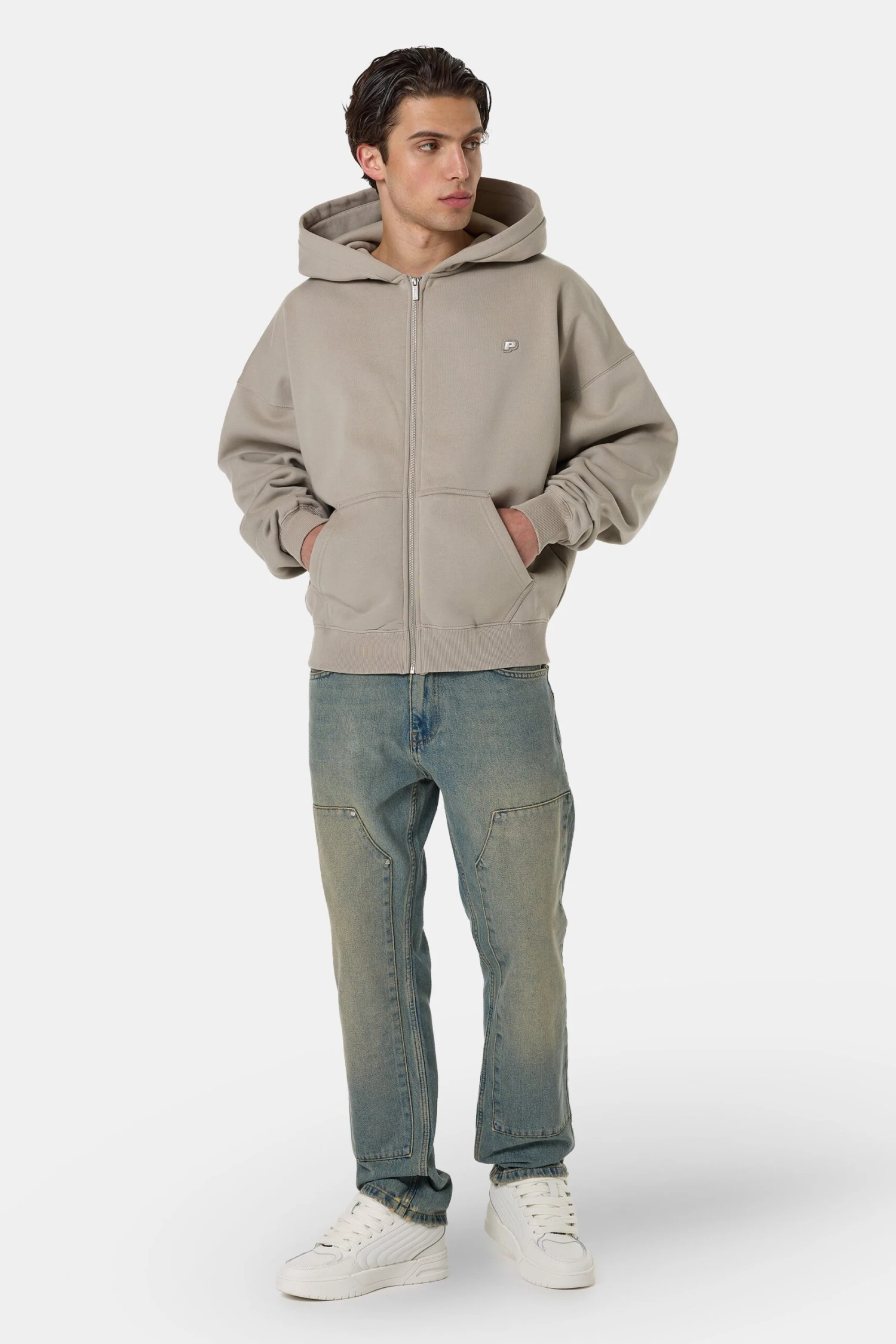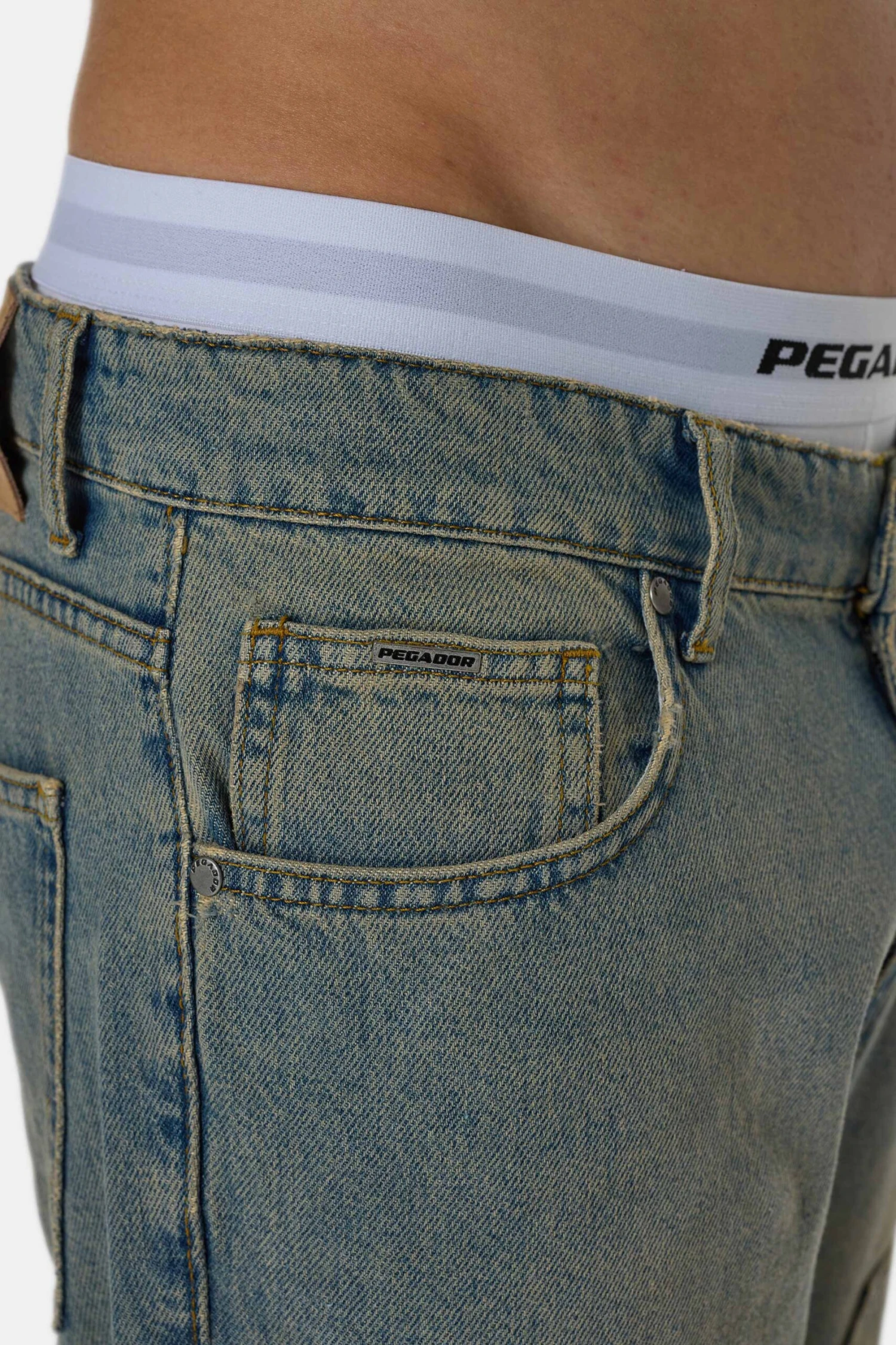 - silberner Metall-Logo-Patch auf der rechten Hosentasche